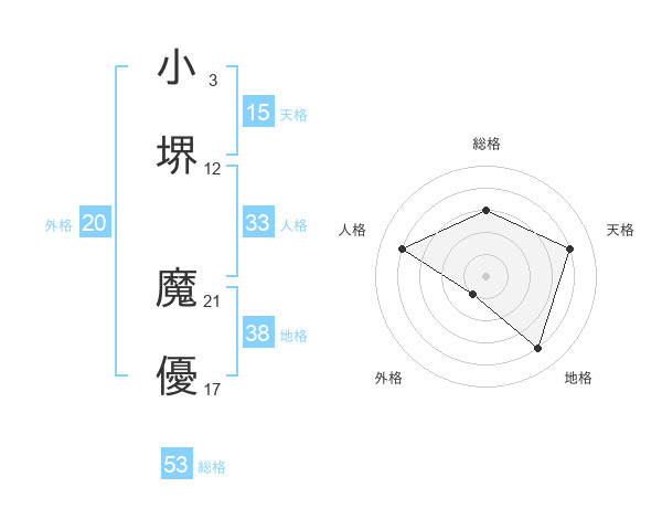 小堺 魔優さんの総格は53画の3点!