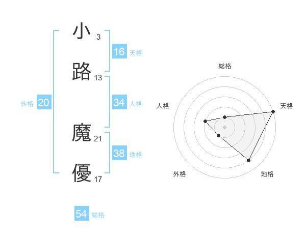 小路 魔優さんの天格は16画の5点!
