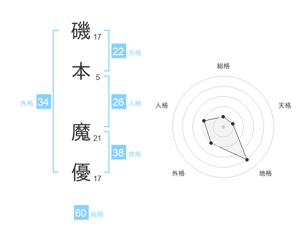 磯本 魔優さんの総格は60画の1点!