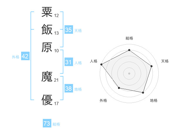 粟飯原 魔優さんの総格は73画の4点!
