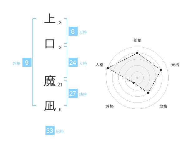 上口 魔凪さんの総格は33画の4点!