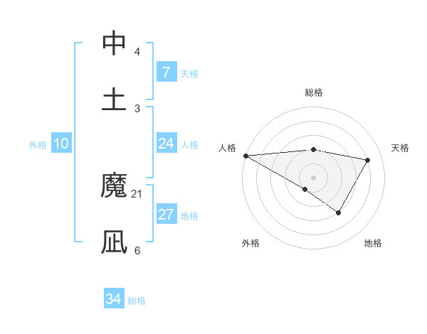 中土 魔凪さんを姓名の画数から五運を鑑定