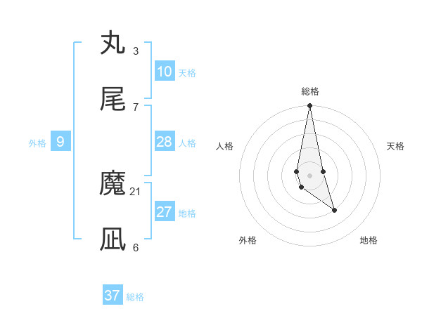 丸尾 魔凪さんの天格は10画の1点!