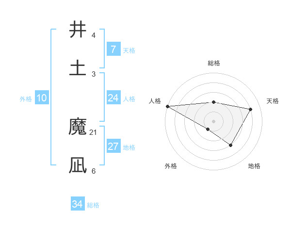 井土 魔凪さんの総格は34画の2点!