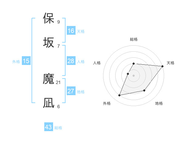 保坂 魔凪さんの天格は16画の5点!