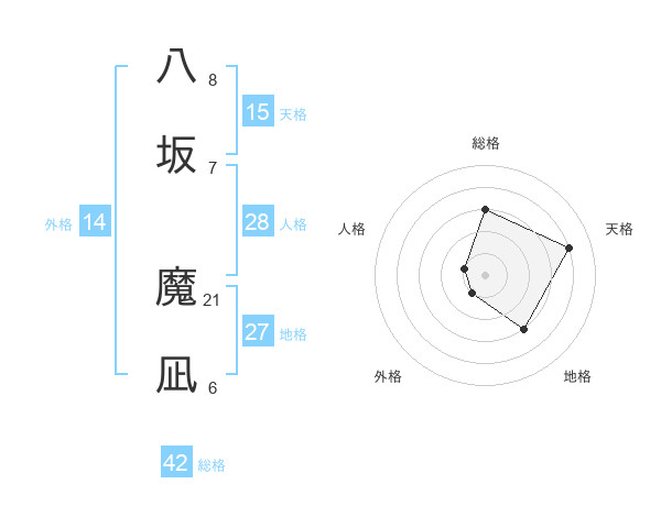 八坂 魔凪さんを姓名の画数から五運を鑑定