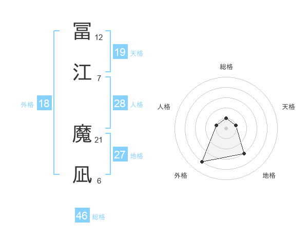 冨江 魔凪さんの総格は46画の1点!