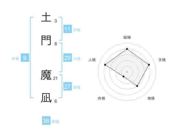土門 魔凪さんを姓名の画数から五運を鑑定