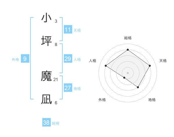 小坪 魔凪さんを姓名の画数から五運を鑑定