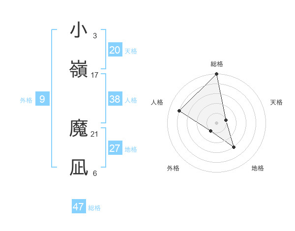 小嶺 魔凪さんを姓名の画数から五運を鑑定