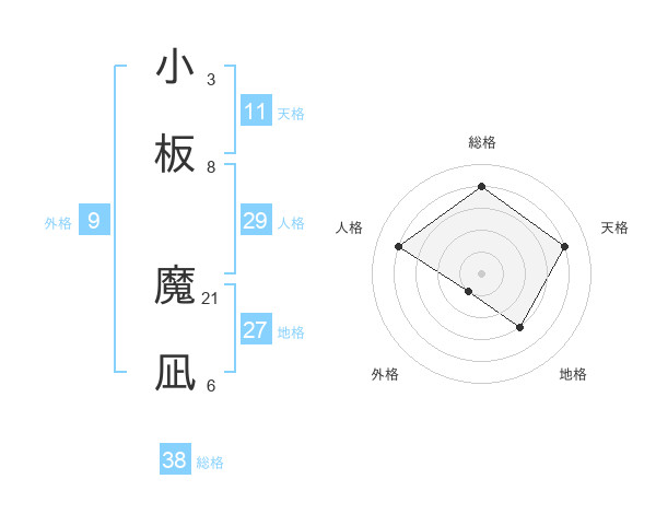 小板 魔凪さんを姓名の画数から五運を鑑定