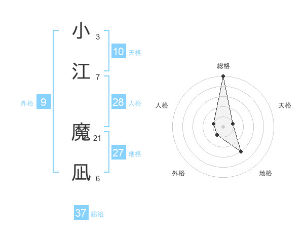 小江 魔凪さんを姓名の画数から五運を鑑定