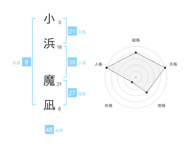 小浜 魔凪さんの天格は21画の5点!