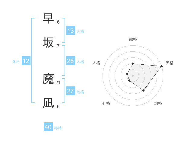 早坂 魔凪さんを姓名の画数から五運を鑑定