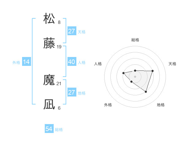 松藤 魔凪さんの総格は54画の1点!