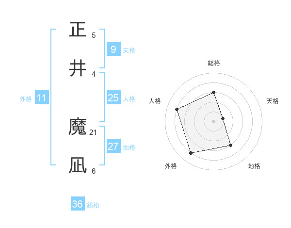 正井 魔凪さんを姓名の画数から五運を鑑定