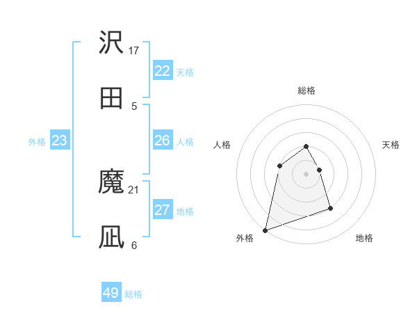 沢田 魔凪さんを姓名の画数から五運を鑑定