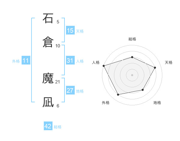 石倉 魔凪さんを姓名の画数から五運を鑑定
