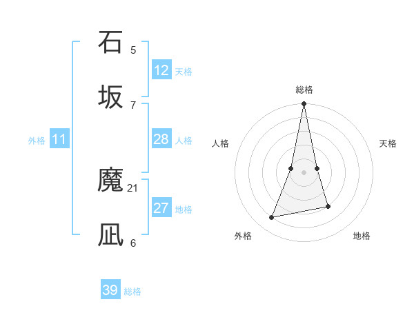 石坂 魔凪さんを姓名の画数から五運を鑑定