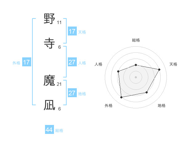 野寺 魔凪さんを姓名の画数から五運を鑑定