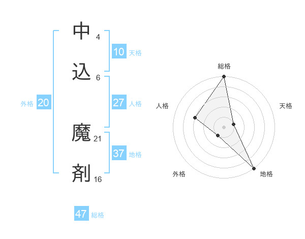 中込 魔剤さんの総格は47画の5点!