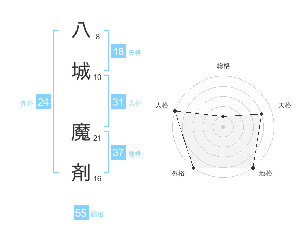 八城 魔剤さんを姓名の画数から五運を鑑定