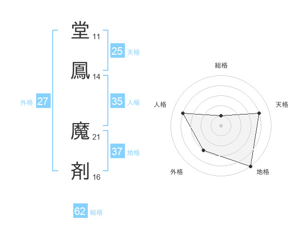 堂鳳 魔剤さんを姓名の画数から五運を鑑定