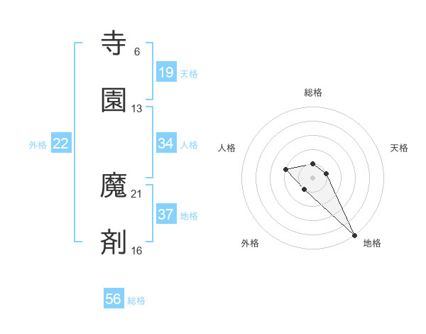 寺園 魔剤さんを姓名の画数から五運を鑑定