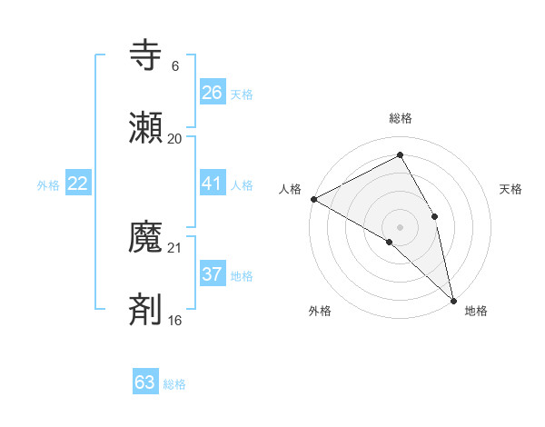 寺瀬 魔剤さんの総格は63画の4点!