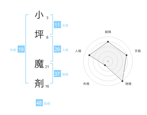 小坪 魔剤さんを姓名の画数から五運を鑑定