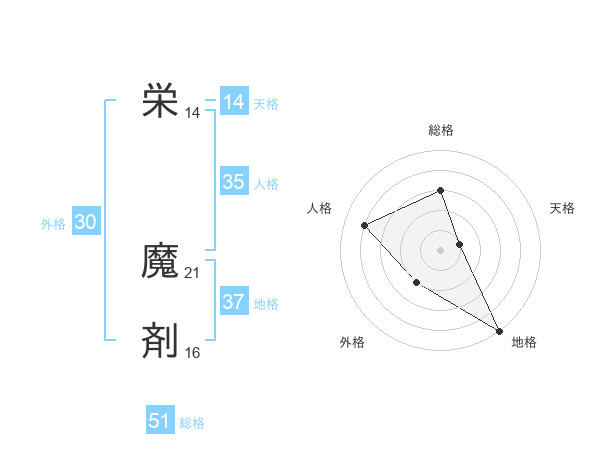 栄 魔剤さんの総格は51画の3点!
