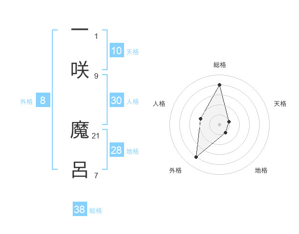 一咲 魔呂さんを姓名の画数から五運を鑑定