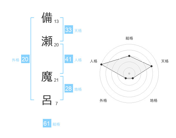 備瀬 魔呂さんを姓名の画数から五運を鑑定