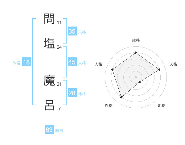 問塩 魔呂さんの総格は63画の4点!