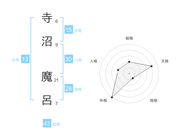 寺沼 魔呂さんの外格は13画の5点!