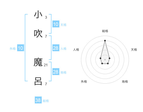 小吹 魔呂さんの総格は38画の4点!