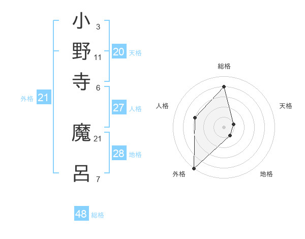 小野寺 魔呂さんの外格は21画の5点!