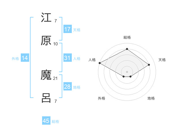 江原 魔呂さんを姓名の画数から五運を鑑定