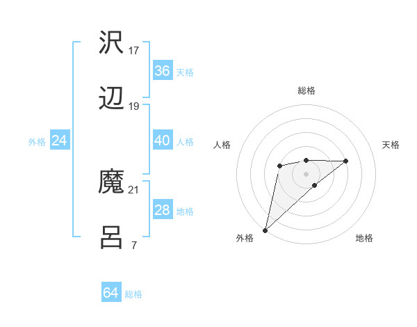 沢辺 魔呂さんの外格は24画の5点!