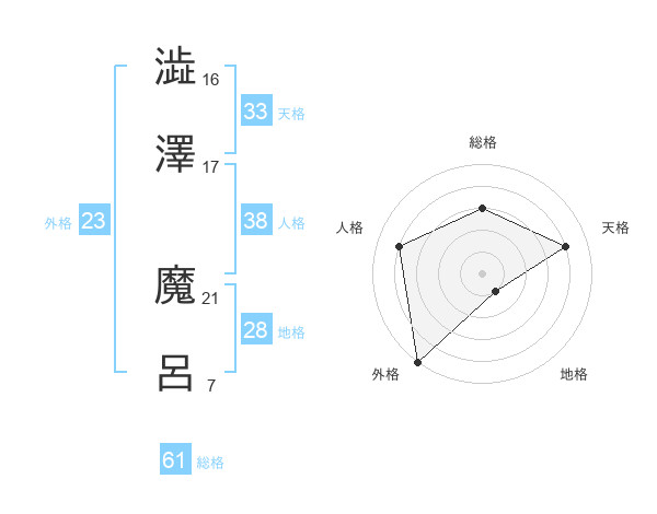澁澤 魔呂さんを姓名の画数から五運を鑑定