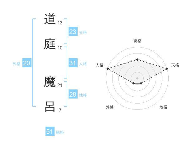 道庭 魔呂さんの総格は51画の3点!