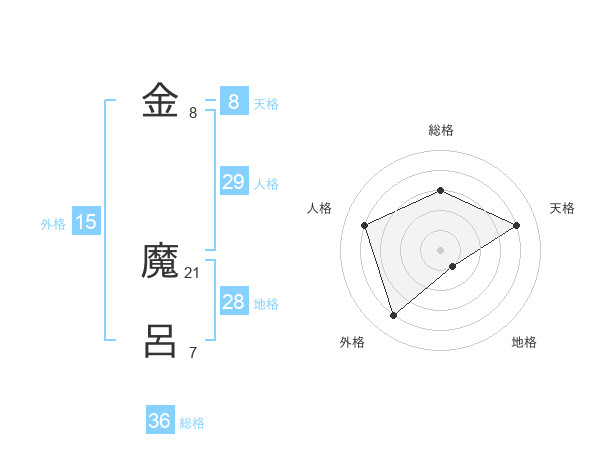 金 魔呂さんの天格は8画の4点!