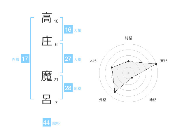高庄 魔呂さんの総格は44画の2点!