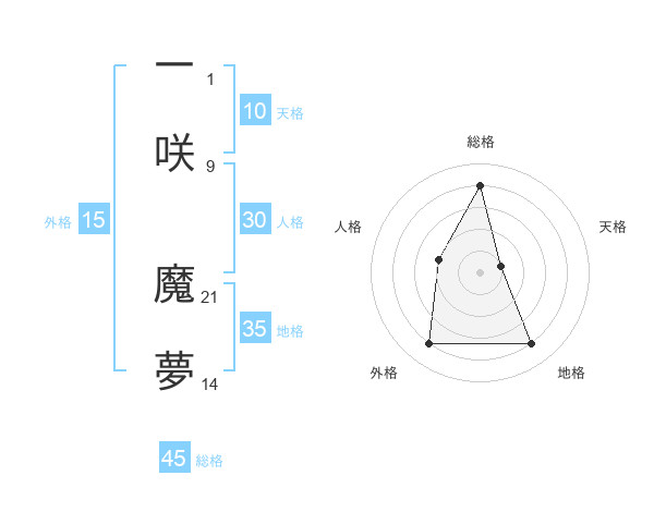 一咲 魔夢さんの総格は45画の4点!