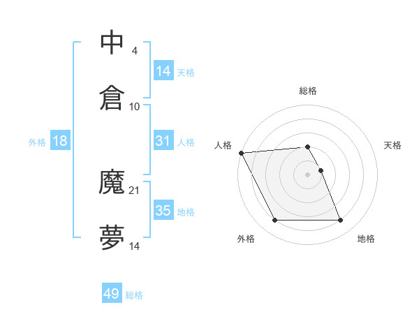 中倉 魔夢さんを姓名の画数から五運を鑑定