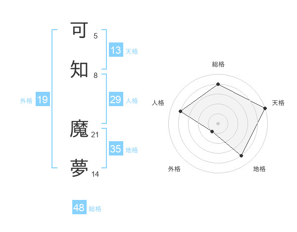 可知 魔夢さんの総格は48画の4点!
