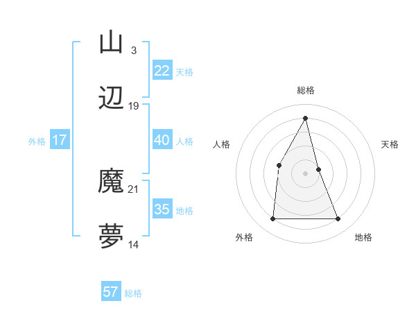 山辺 魔夢さんを姓名の画数から五運を鑑定
