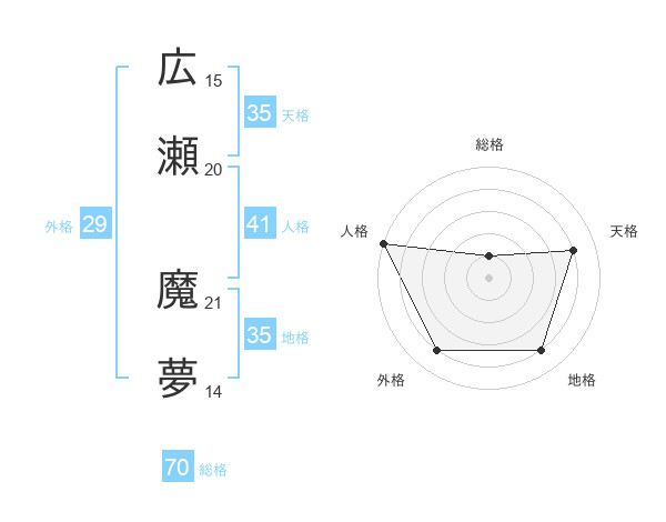 広瀬 魔夢さんの総格は70画の1点!