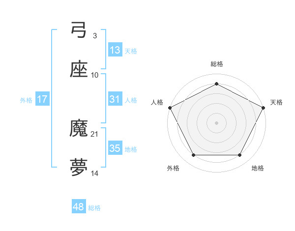 弓座 魔夢さんを姓名の画数から五運を鑑定