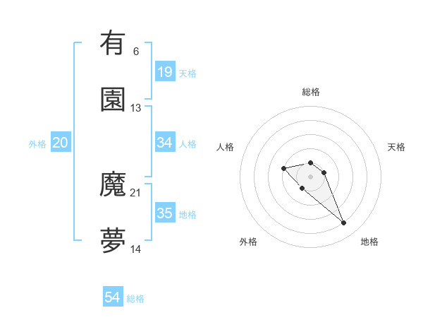 有園 魔夢さんの総格は54画の1点!